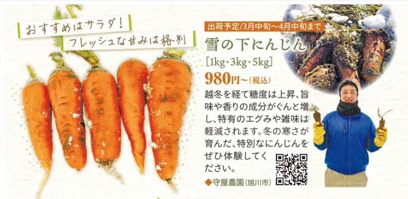 | 雪の下にんじん 出荷時期 3月中旬から4月中旬頃まで |